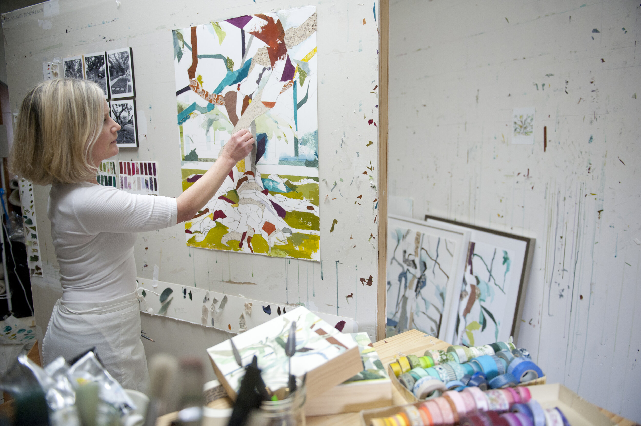 Jill Lear is a painter whose primary subject and inspiration are trees in the landscape as a means of transcribing not only the experience of being in, and thinking about Nature but also the way in which we process the world around us. Jill’s large-scale works on paper have been exhibited in San Francisco, New York, Seattle and Austin. Her work has been acquired by the permanent collections at One World Trade Center, NY, Wright State University Art Museum Dayton, OH as well as the Philip Isles Collection, NY. Jill trained formally at the New York Studio School NY, NY and holds degrees from both Southern Methodist University in Dallas, TX as well as The Chambre Syndicale of Haute Couture in Paris, France. She is currently at work on a series called “Urban Sprawl: Trees in Cities”